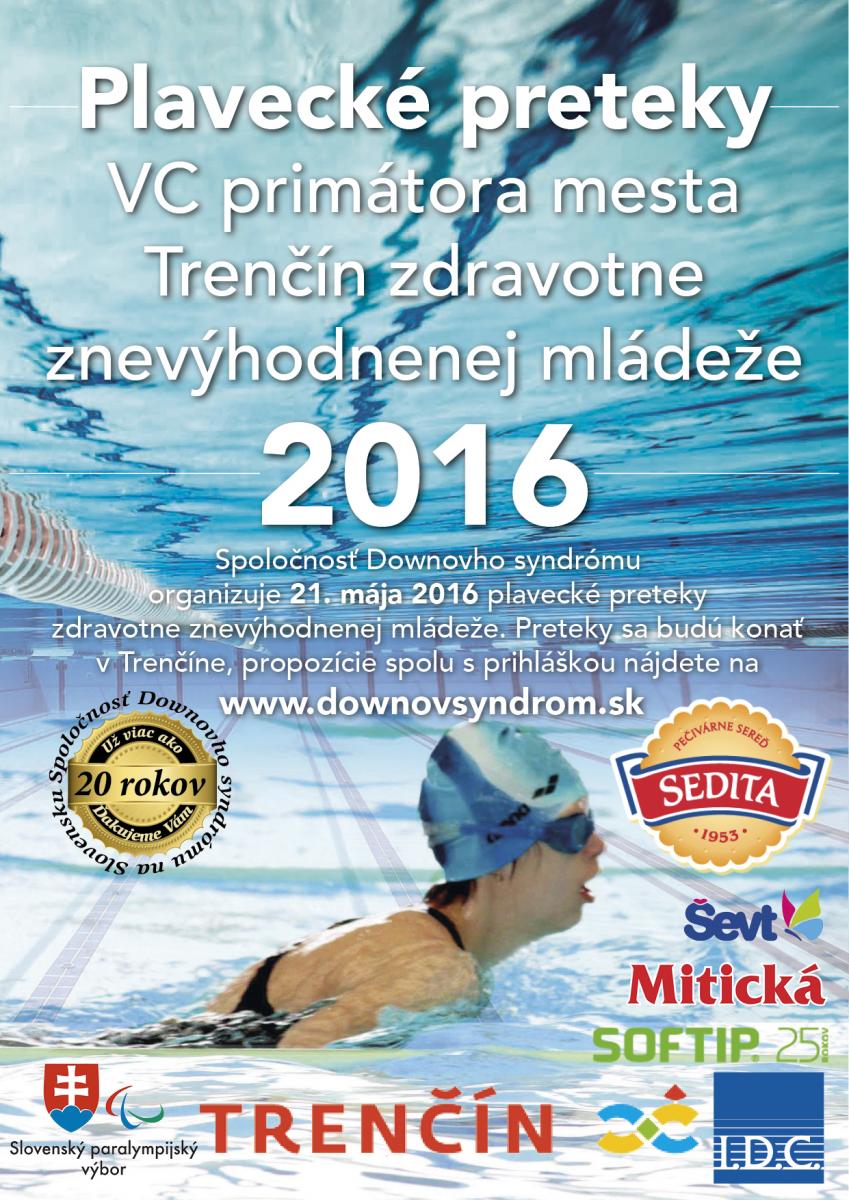 V sobotu 21. mája sa v Trenčíne konali plavecké preteky VC primátora mesta Trenčín zdravotne znevýhodnenej mládeže 2016 a 1. majstrovstvá Slovenskej republiky v plávaní mládeže s Downovým syndrómom.